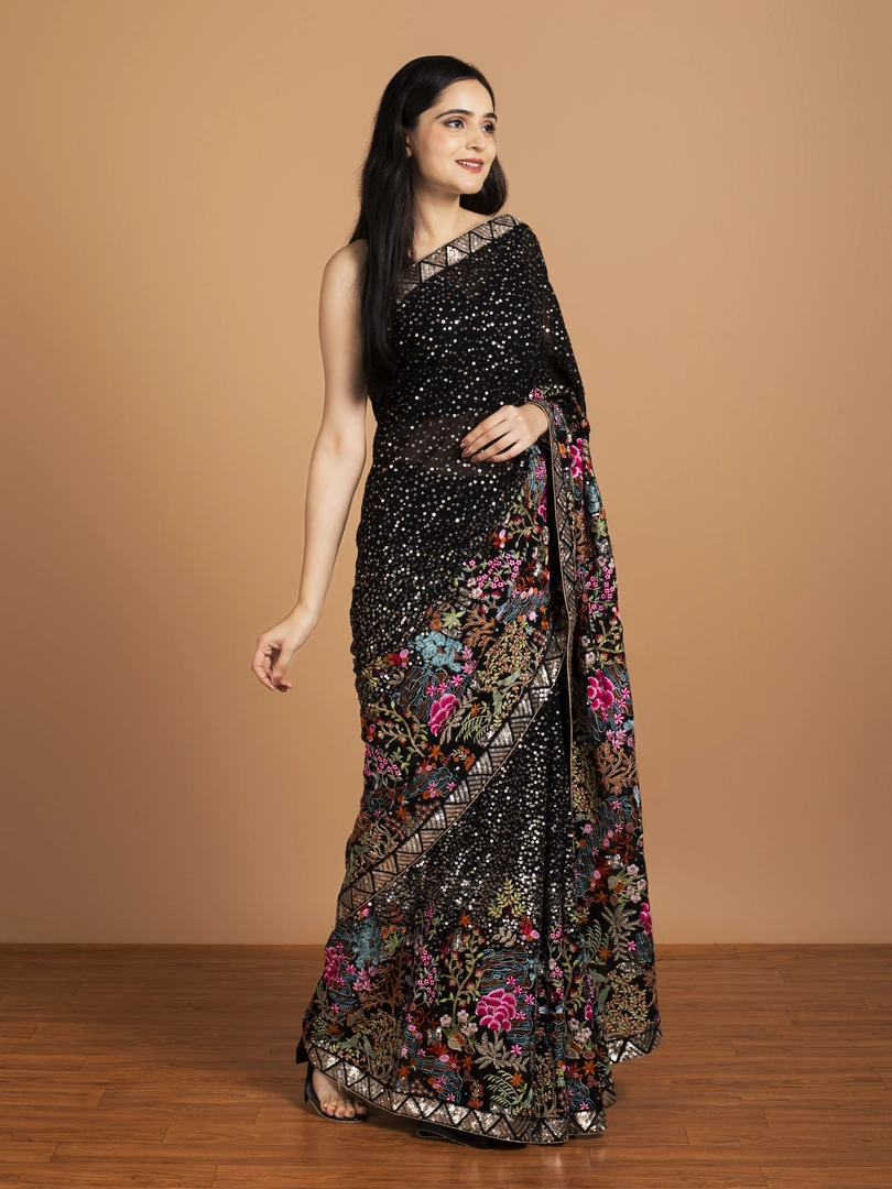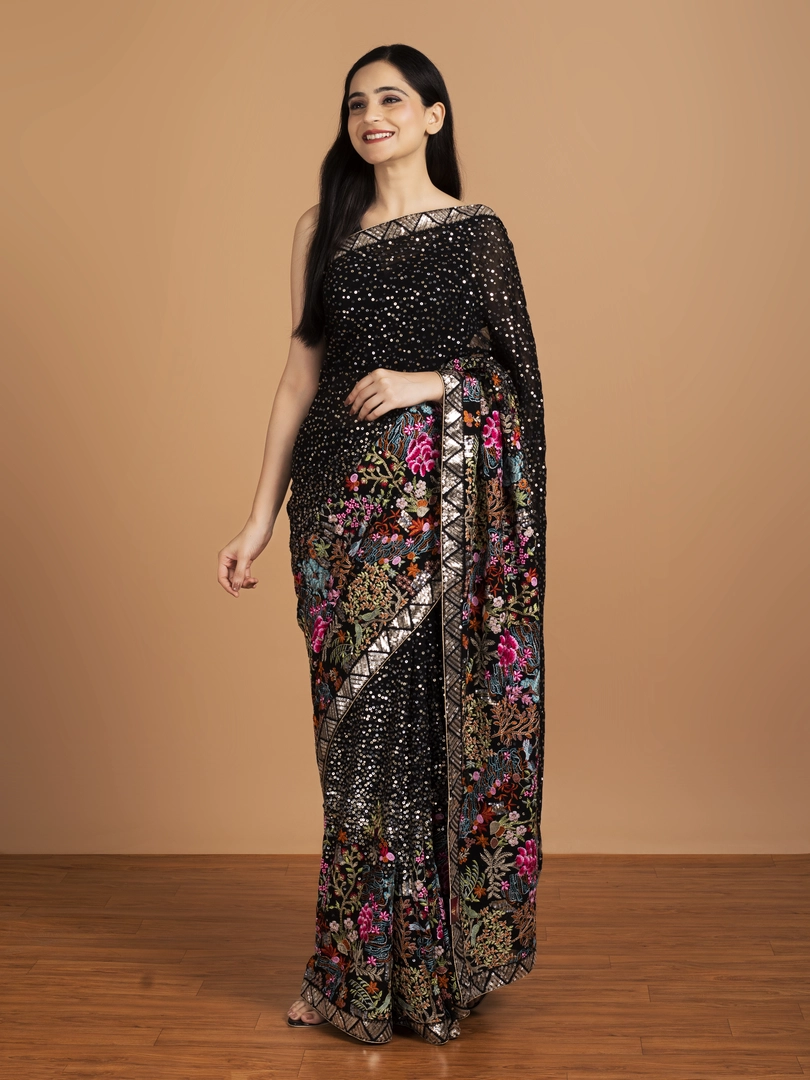 Georgette Sequin, Cut Dana and Resham Embroidered Saree